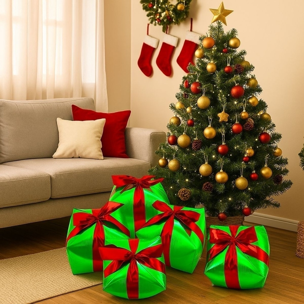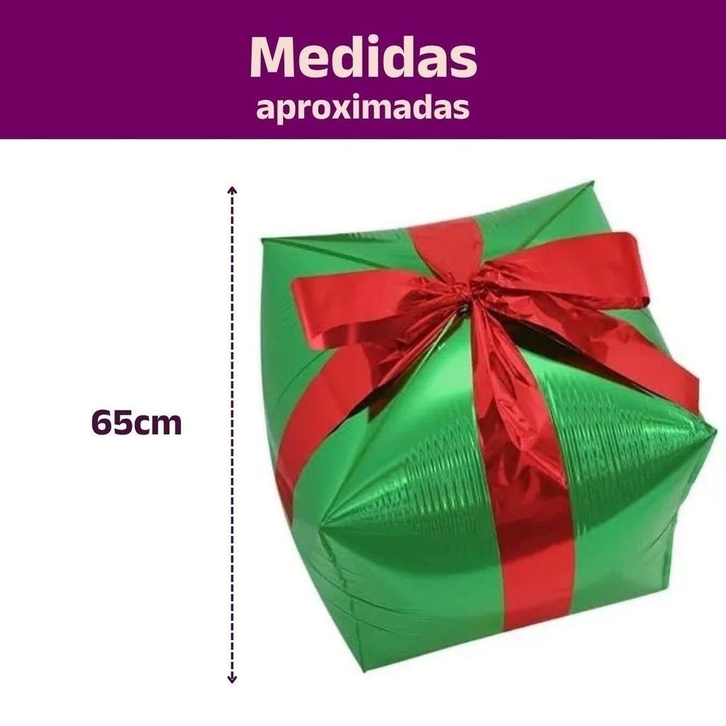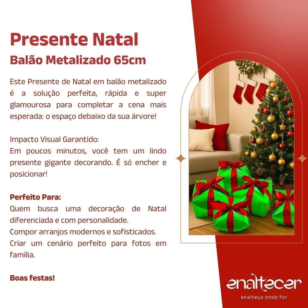 Este Presente de Natal em balão metalizado em 4D é a solução perfeita, rápida e super glamourosa para completar a cena mais esperada: o espaço debaixo da sua árvore!
