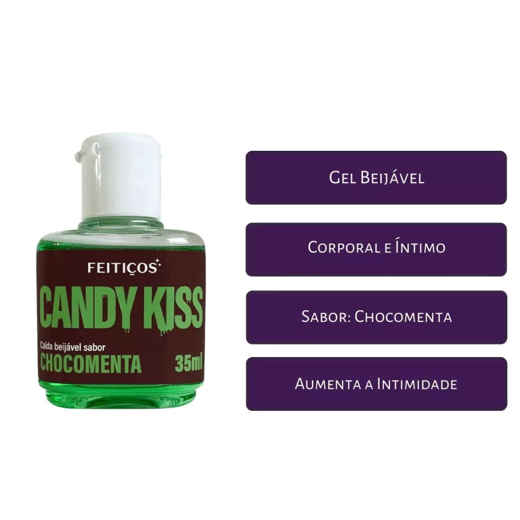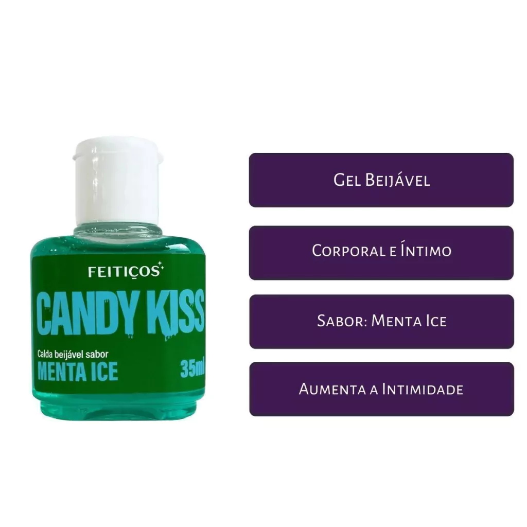 O Candy Kiss é uma calda beijável que tem seu principal objetivo estimular as sensações e a diversão, um gel beijável com uma vasta variação de sabores.