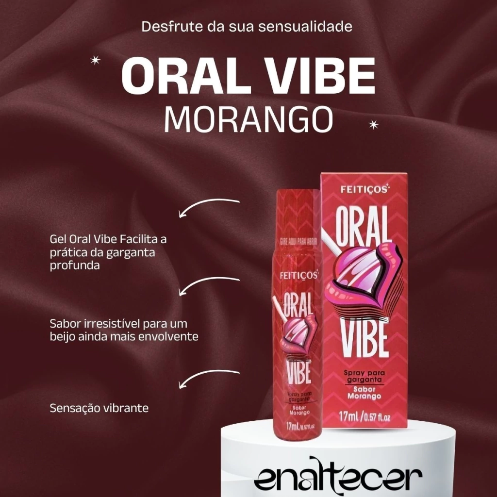 Chegou o segredo para um sexo oral inesquecível: Oral Vibe, o spray para garganta profunda que transforma a experiência com sensações vibrantes e intensas. Sua fórmula exclusiva possui como principais ativos o EXTRATO DE JAMBU que vai estimular a salivação e dar uma sensação de vibração, fazendo com que o sexo oral seja mais fundo e intenso, aliado ao ÓLEO DE CRAVO que traz a sensação de dessensibilização tirando aquele desconforto característico da garganta profunda.