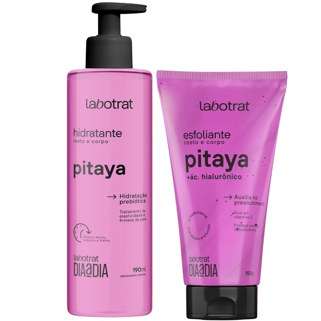 O Kit Labotrat Dia a Dia combina dois cuidados essenciais para uma pele macia, hidratada e radiante. O esfoliante de 150g, formulado com sementes naturais, remove impurezas e células mortas de forma suave, estimulando a renovação da pele e deixando-a uniforme e com toque delicado. Já o hidratante de 190ml, enriquecido com ácido hialurônico e argila branca, nutre profundamente, promove efeito preenchido e garante maciez duradoura. Com fragrância envolvente de pitaya, este kit transforma sua rotina de cuidados em um momento de frescor e bem-estar.