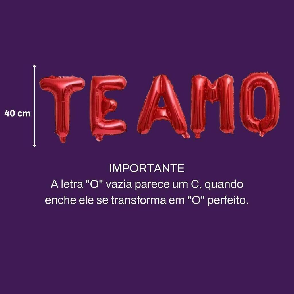 O balão TE AMO possui altura de 43 cm, largura varia por conta do formato da letra